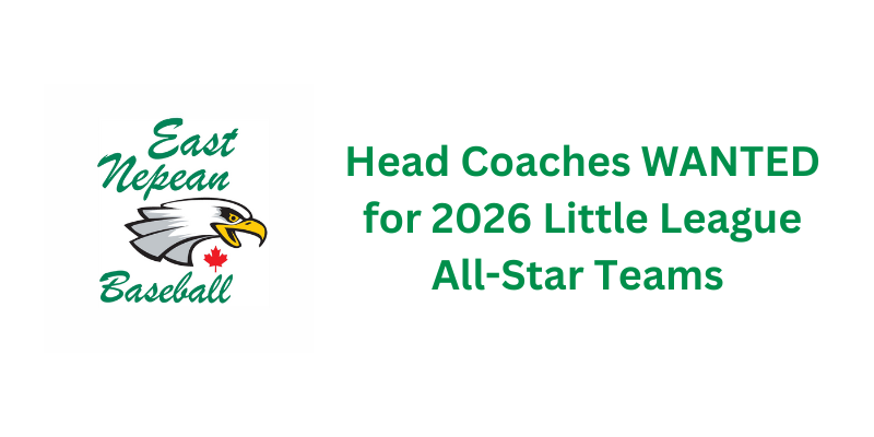 East Nepean Little League is reaching out to members to advise of All Star coaching opportunities for the 2026 season. During the 2026 season, East Nepean is planning to field the following teams and is seeking Coaches for each team: