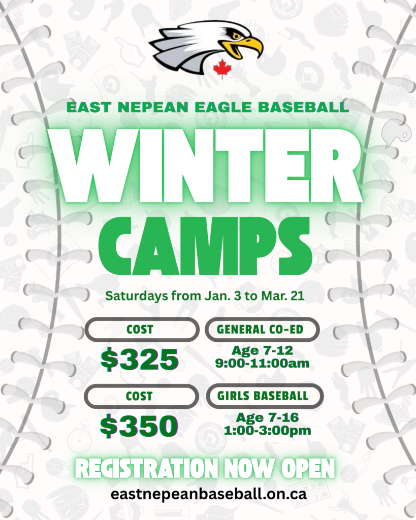 East Nepean’s Winter Baseball Camps are the perfect way for players to build skills, stay in the game, and have fun indoors with friends.